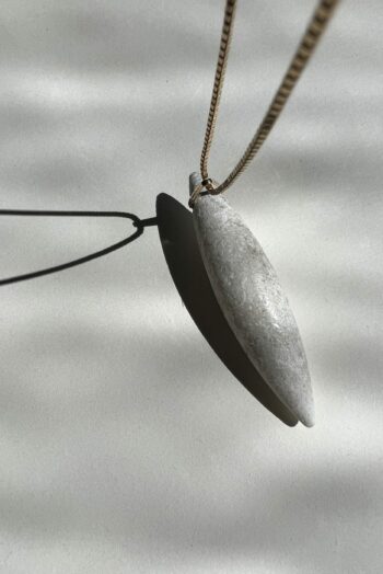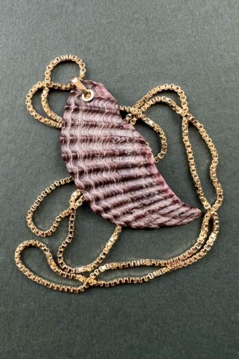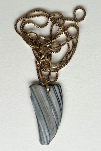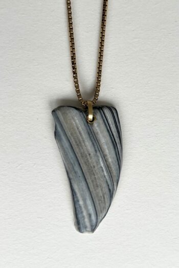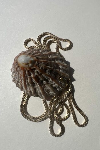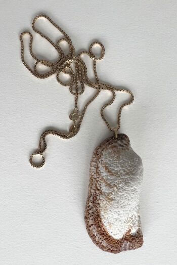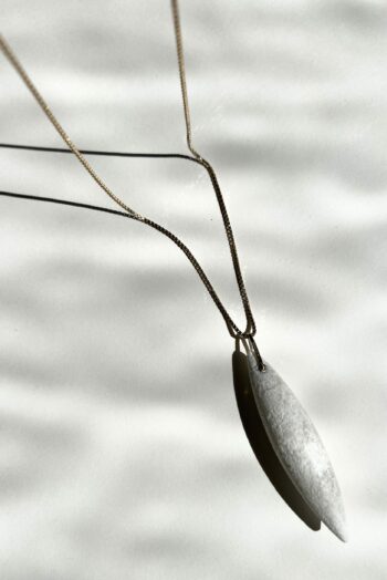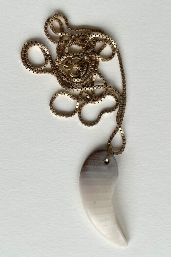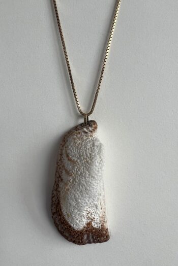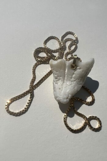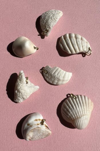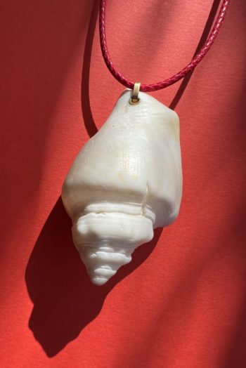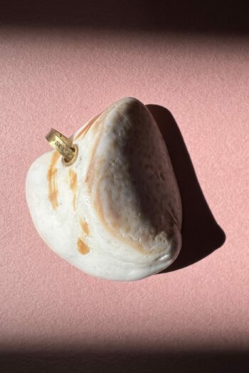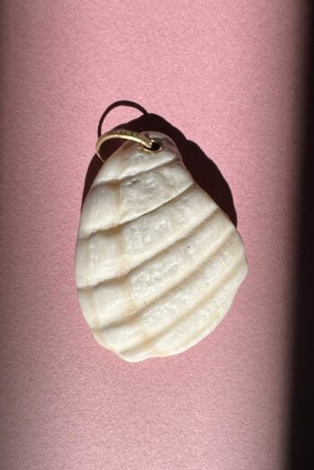 Perforated off white sea shell pendant 3cm length x 2cm width Set with an 18 carat solid gold bail detail Handcrafted in the United Kingdom