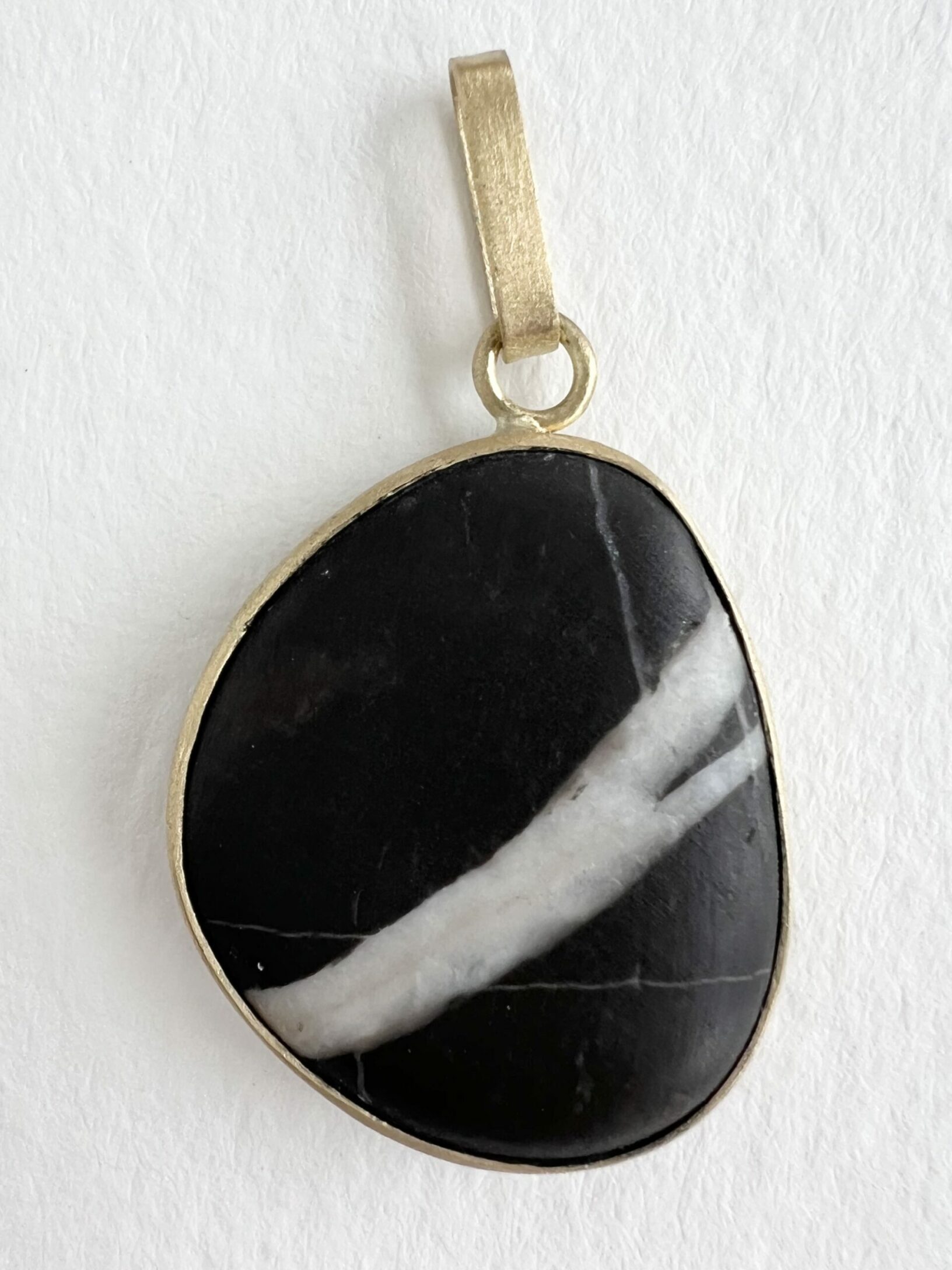 WHITE STRIPED BLACK PEBBLE PENDANT